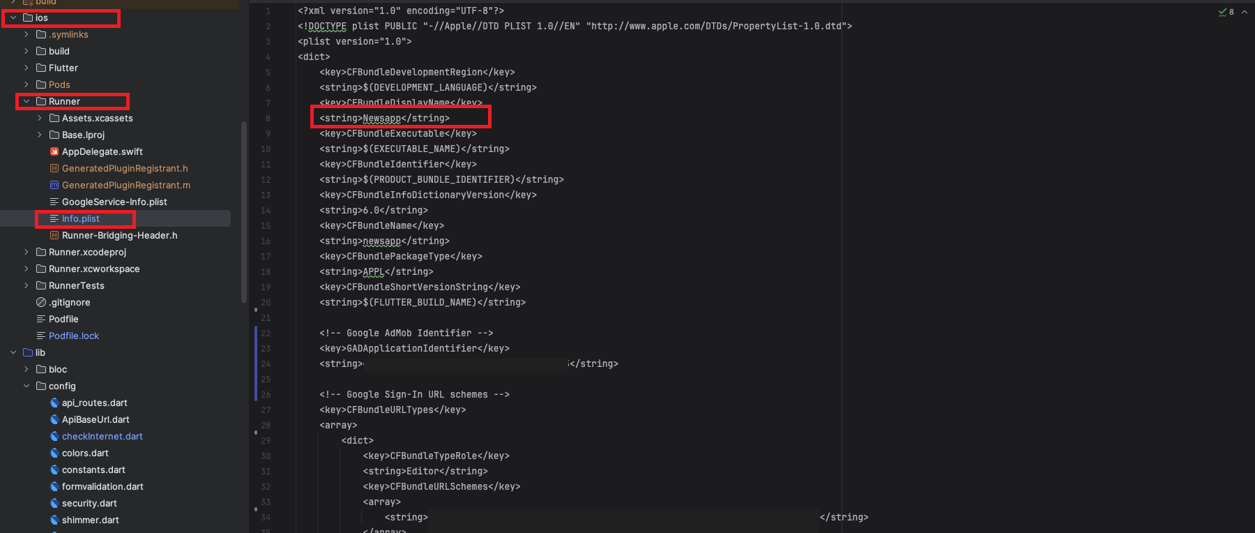 - Open your Project's Runner.xcworkspace file in Xcode, and Add your Team [Your Apple Developer ID] and also Insert GoogleService-Info.plist file [Downloaded From Firebase Project] inside folder named Runner.